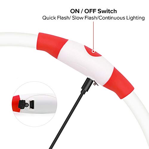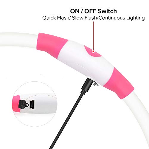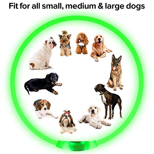 Cuttable & ONE SIZE FIT ALL DOGS: You could cut to desired length while you receive the flash dog necklace. easily cut for it is TPU material. Total length is 27.5 length. Perfect for spaniel. Labrador. Hound. German shepherd. collie and more.
