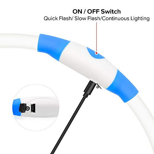 SAFETY PET COLLAR: Makes your pet dog be seen in low light conditions and vehicle. which can help you keep your dog safe. The led light visible approx 500 meters(1640 ft) at night under enough charge status.